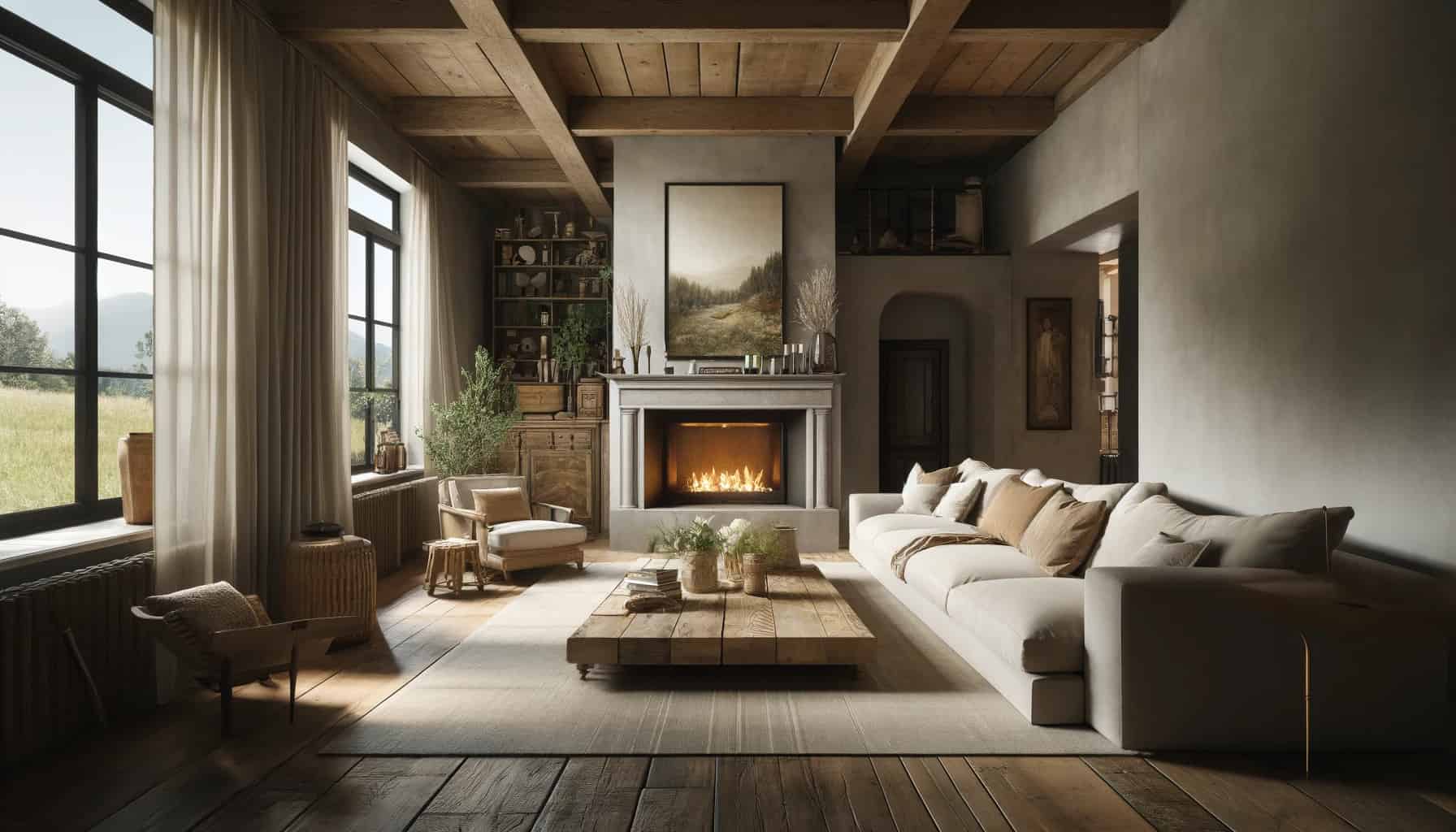 חומרים טבעיים: שימוש בעץ, אבן וחומרים טבעיים נוספים מעניק תחושת חמימות ומחבר את החלל לטבע. לדוגמה, קורות עץ חשופות בתקרה או רצפת פרקט מעץ מלא.